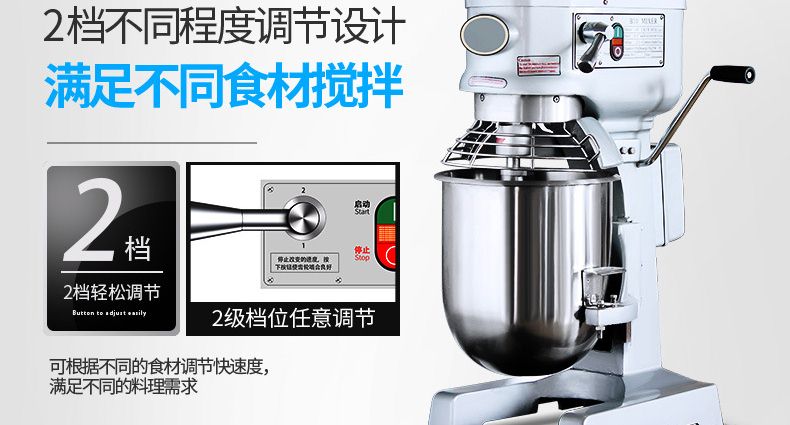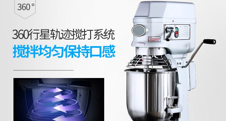 旭眾牌新款A系列食品攪拌機運用行星運動原理,攪拌器在料桶內做行星運動,從而使食品充分混合,具有和面、攪和碎狀。粉狀及液狀食品等多種功能,機器工作平穩(wěn),設有防護罩,安全可靠,設有多級轉速,并配有多種攪拌器,用戶可按不同要求選擇適當的速度和攪拌器,以實現和面、拌餡、打蛋等功能。機內凡接觸食物的零部件均采用不銹鋼制造或經特殊表面處理。符合食品衛(wèi)生標準。